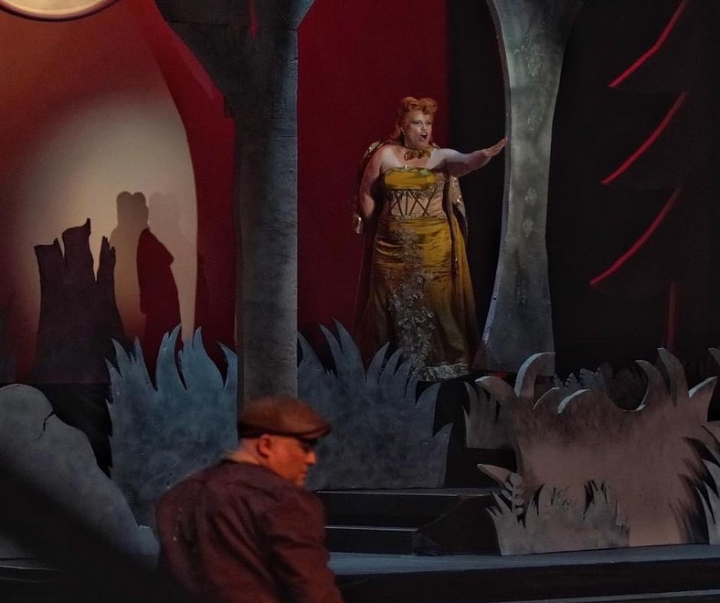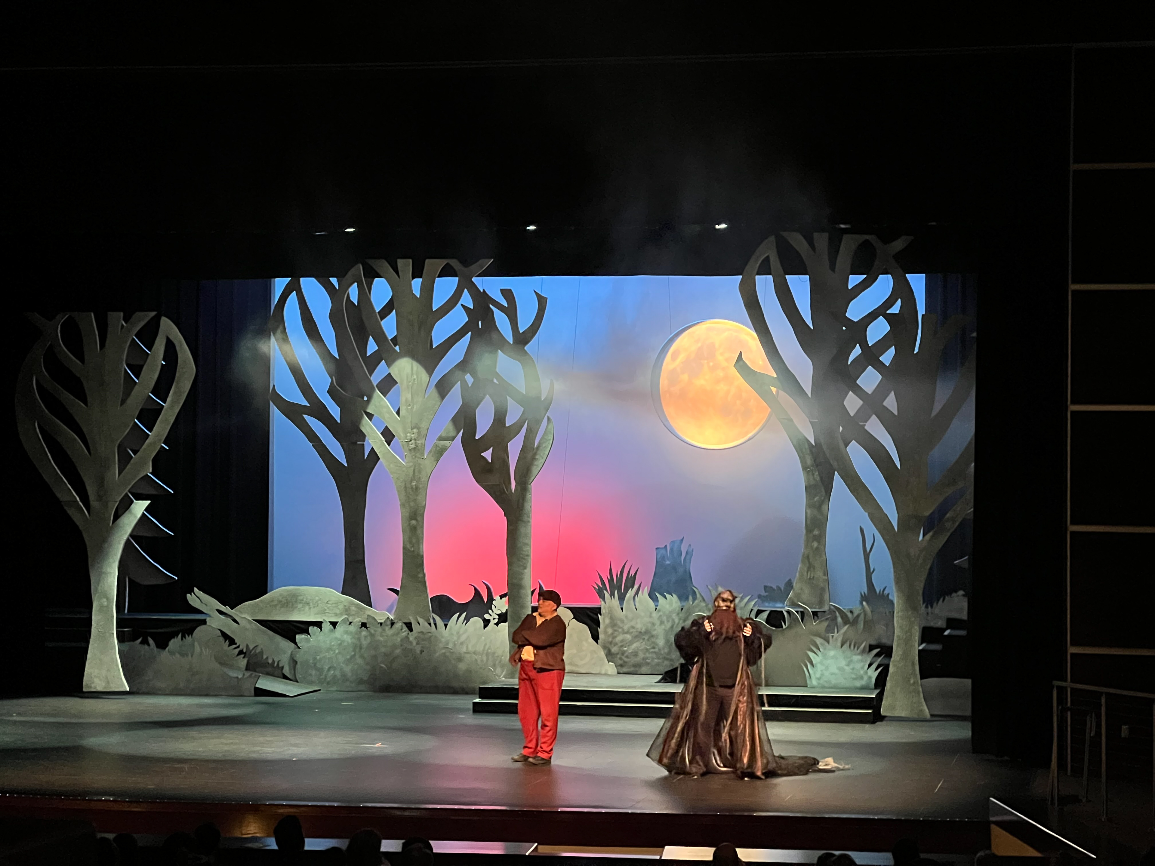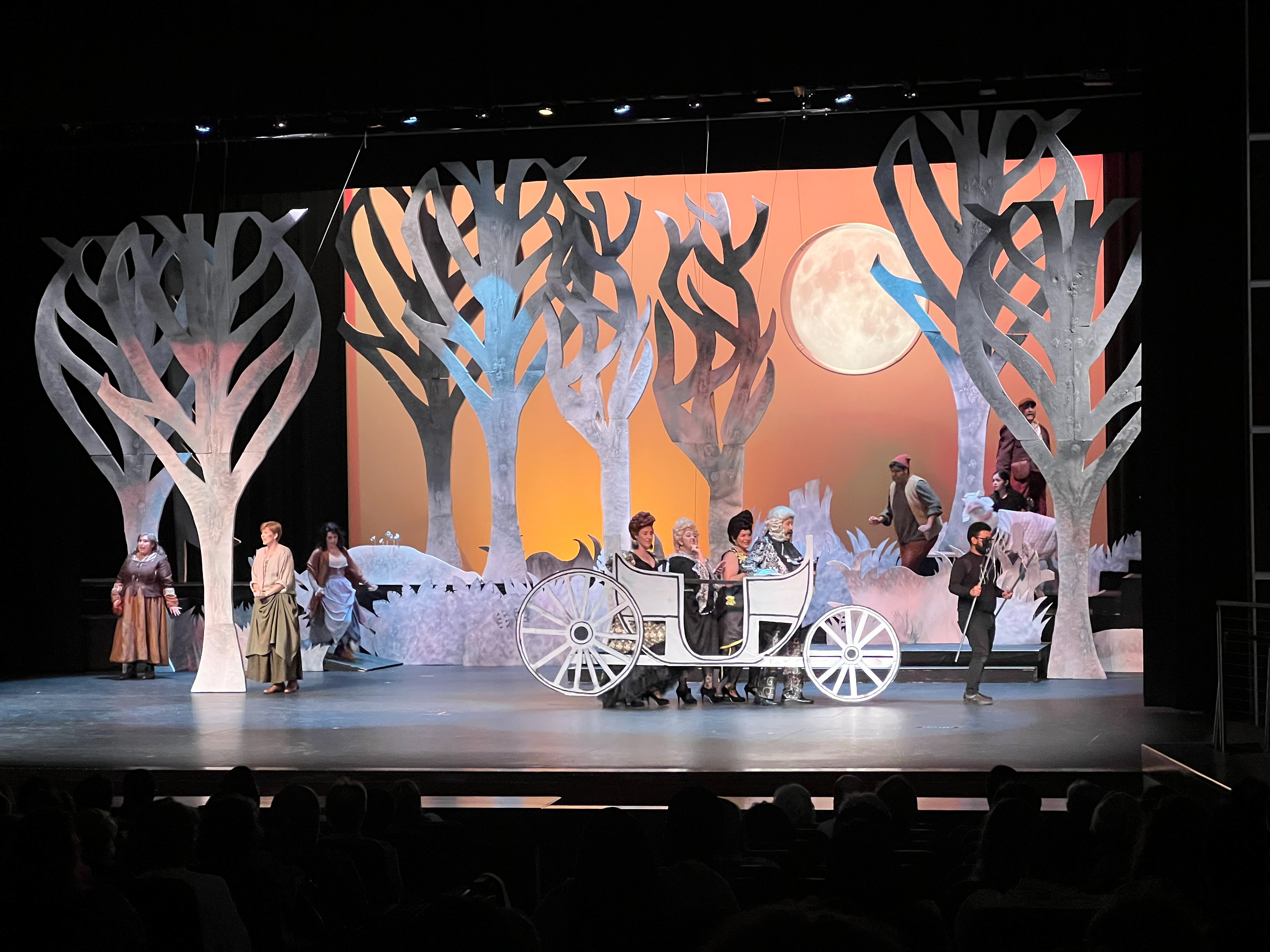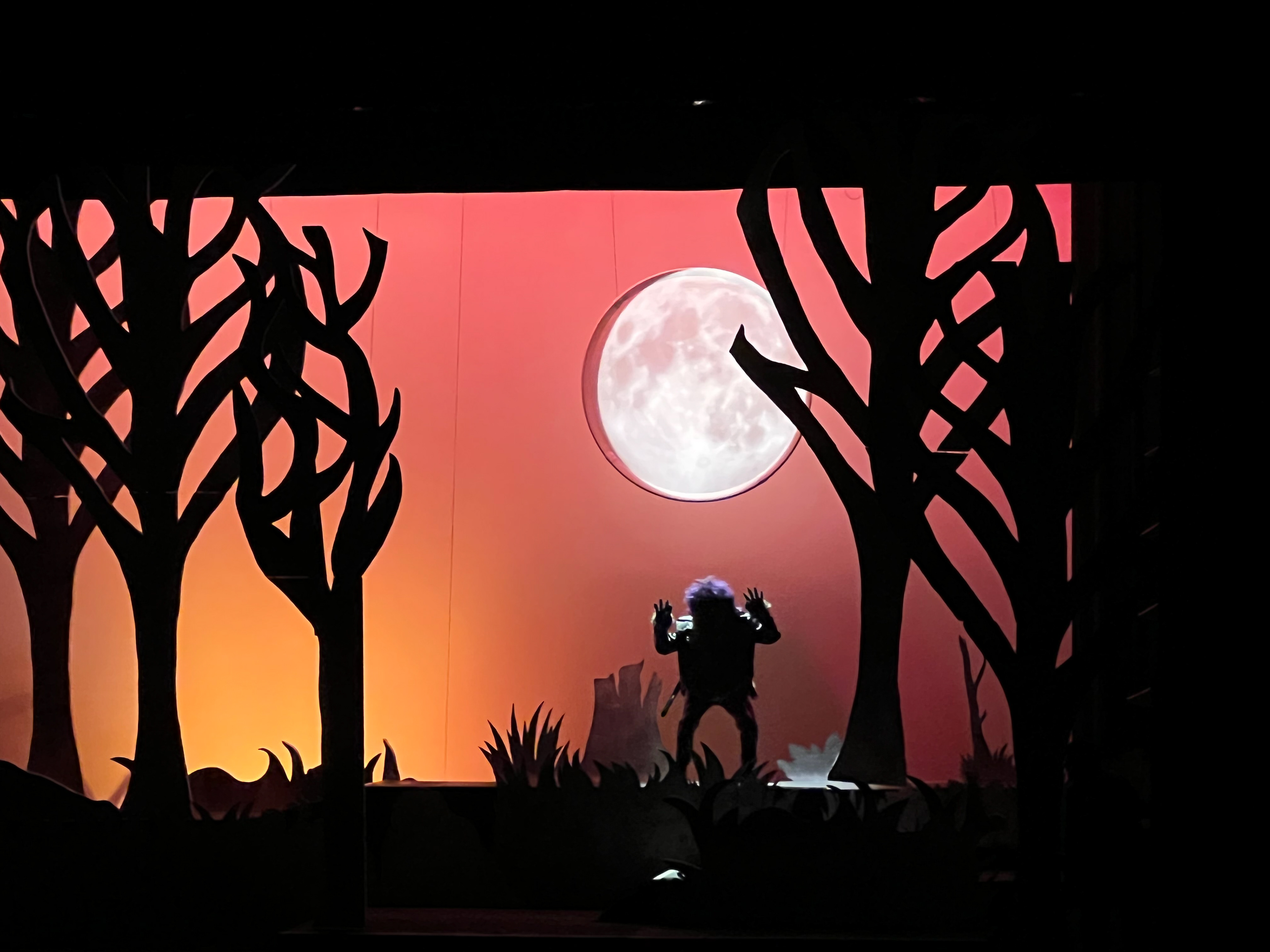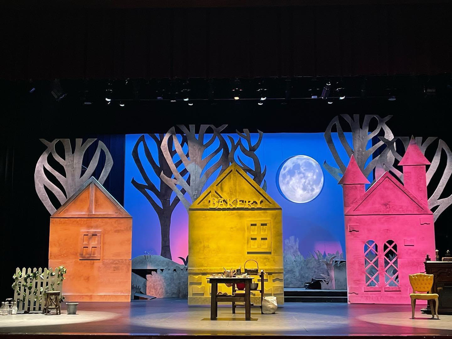 For Laredo Theater Guild International’s production of Into the Woods, the set design harnessed the magic of light and shadow, mirroring the way sunlight, moonlight, and foliage transform the forest. Stylized silhouettes of trees framed a whimsical village, where bold, colorful structures stood against a layered backdrop that shifted with the passage of time and mood. The interplay of shadow and hue created both depth and fantasy, inviting the audience into a world where fairy tales blur with reality. Through simplicity and abstraction, the design captured the musical’s emotional landscape — enchanting, mysterious, and ever-changing like the woods themselves.