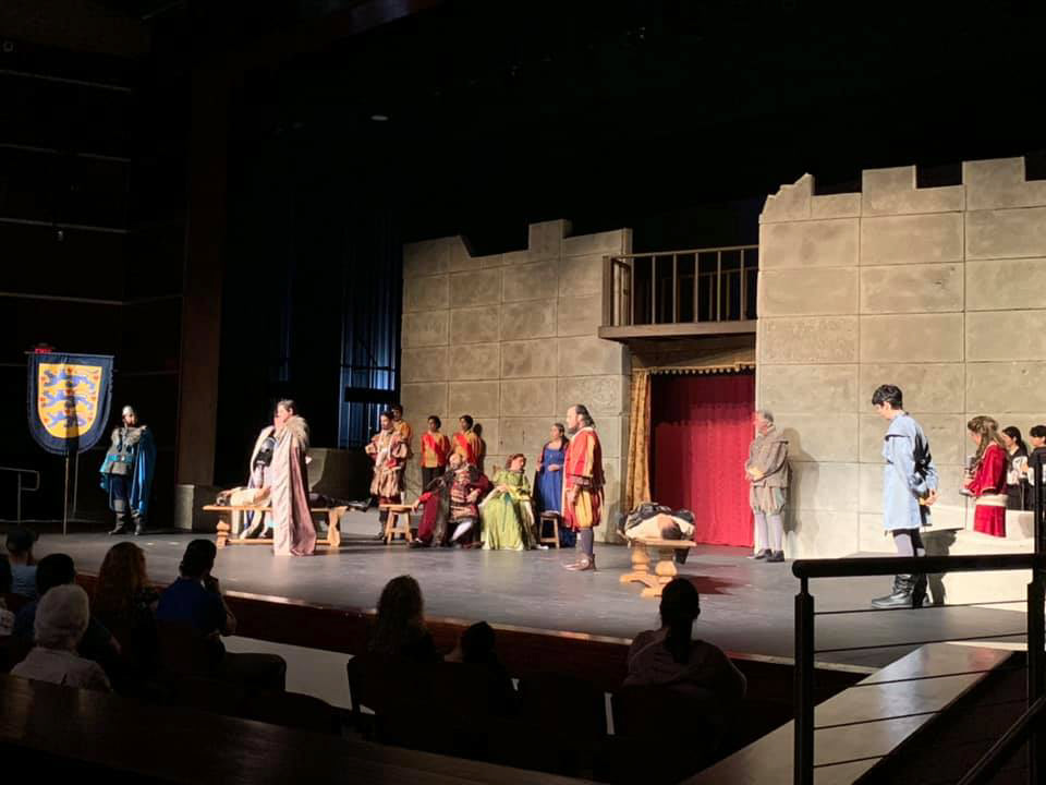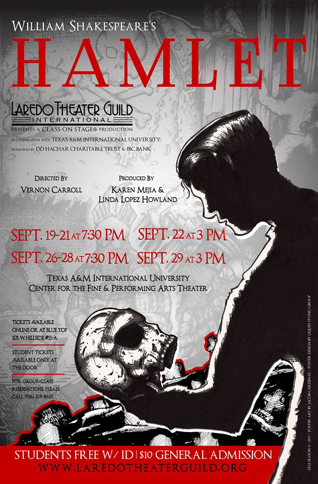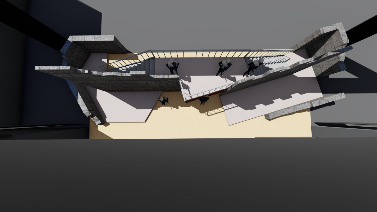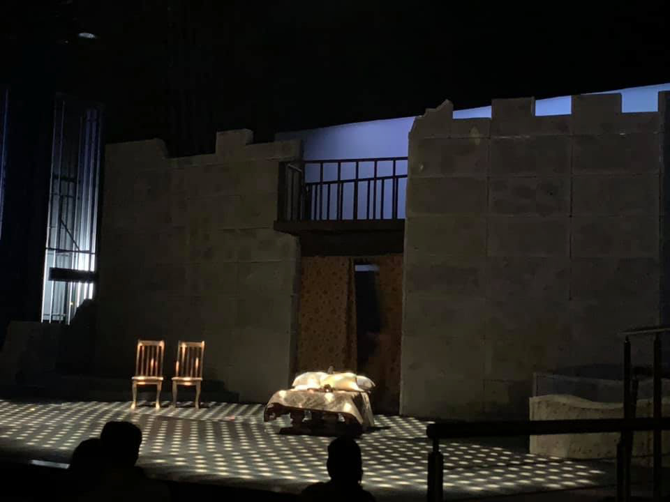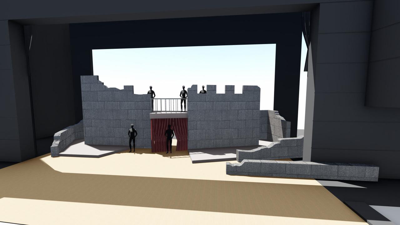 For Laredo Theater Guild International’s production of Hamlet, the set design explored the duality of power and decay through form and elevation. Composed of hardscape stone textures, ramps, and layered platforms, the structure served as both stage centerpiece and atmospheric backdrop. Its fortress-like geometry suggested both protection and imprisonment — a physical manifestation of Hamlet’s inner turmoil and the crumbling state of Elsinore. The interplay of height and shadow allowed for dynamic movement and shifting perspectives, transforming the minimalist architecture into an active participant in the tragedy’s unfolding drama.