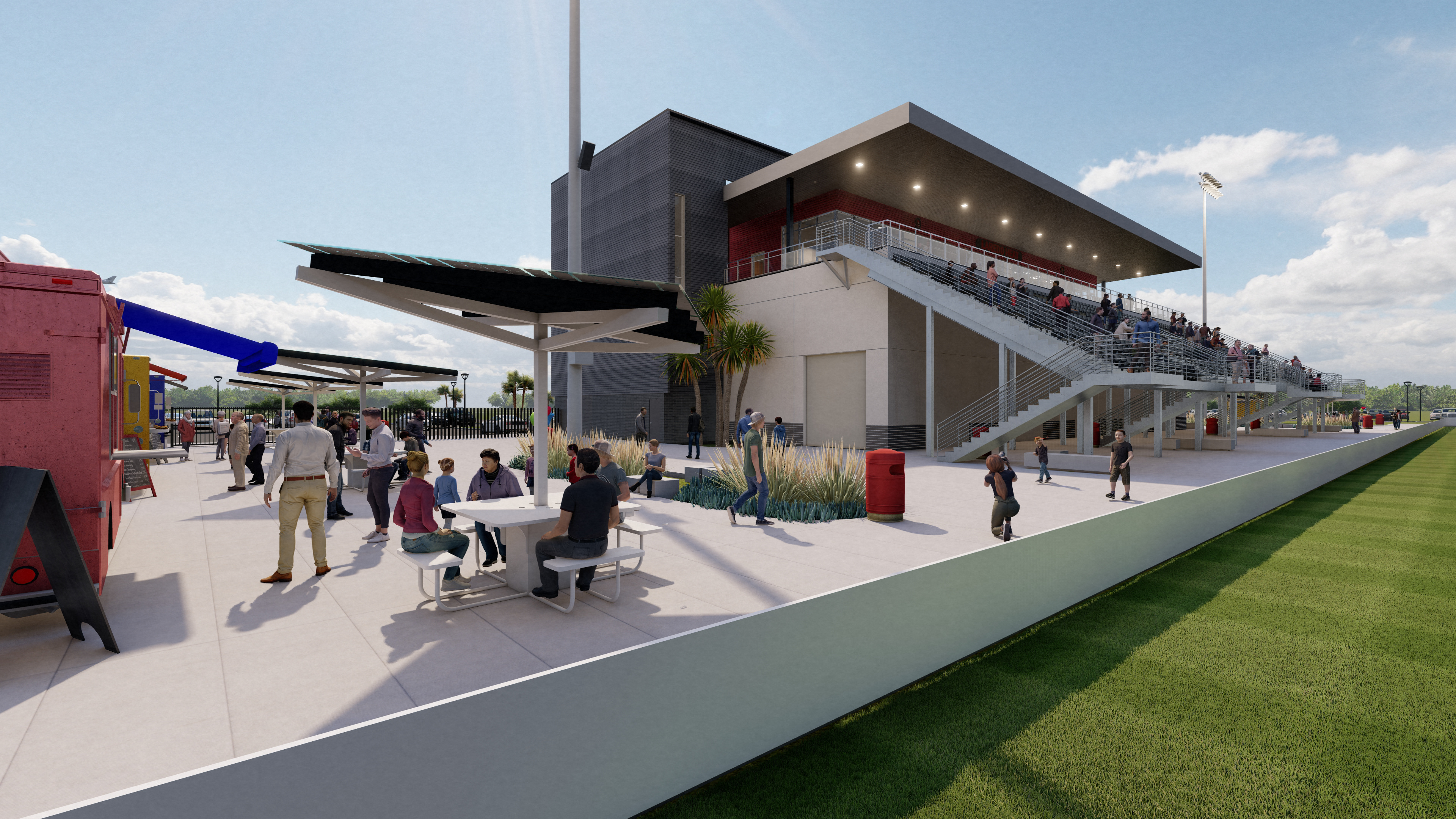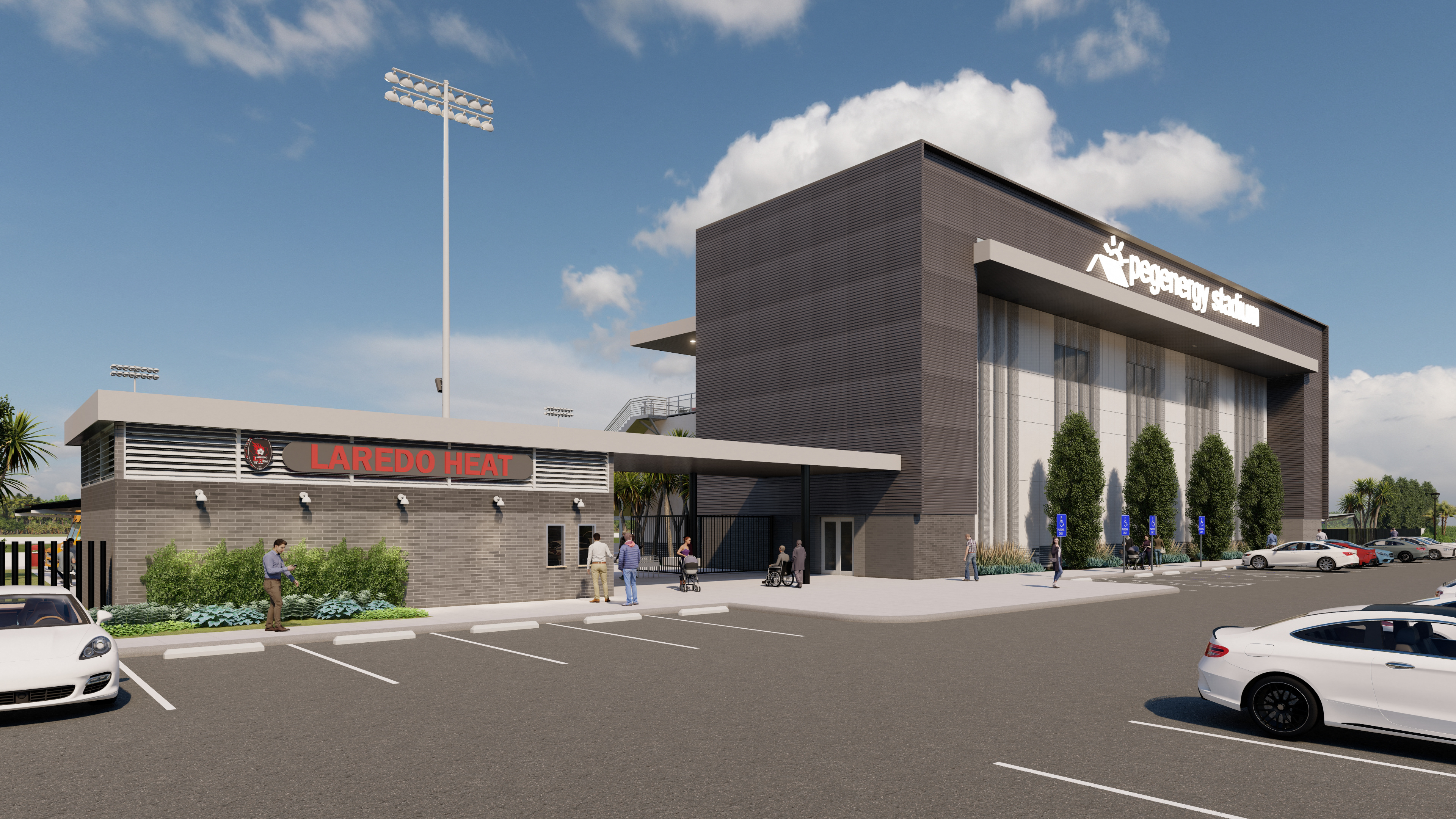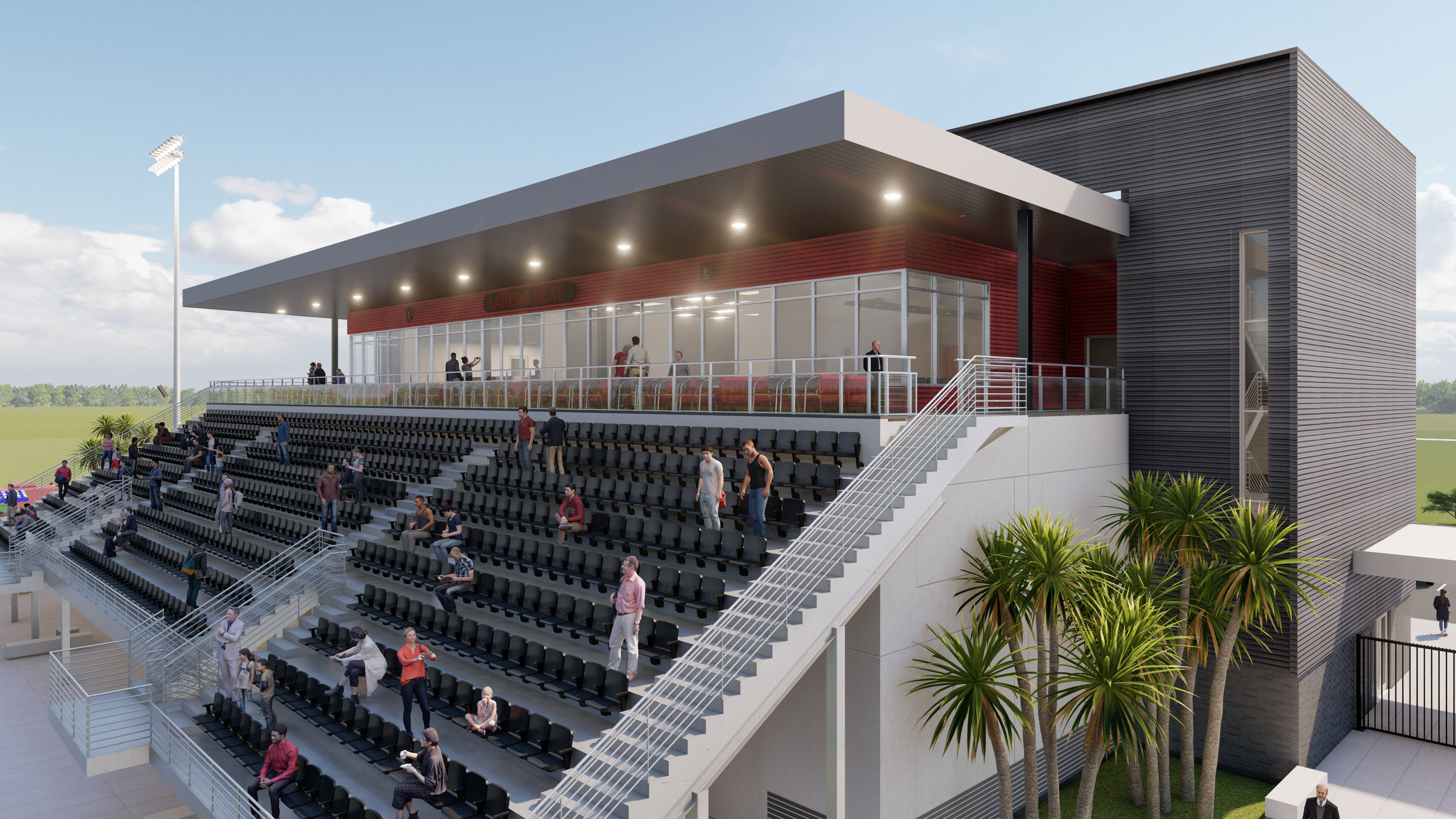 The new Laredo Heat Soccer Stadium, transforms an unexpected mix of elements — part warehouse, part corporate offices, and grandstands — into one striking, cohesive venue. This bold fusion of industry and sport captures the essence of Laredo’s resourceful spirit, turning a pragmatic structure into a dynamic destination. With clean architectural lines, thoughtful circulation, and attention to light, material, and atmosphere, the design balances function and emotion — delivering a stadium that feels both professional and local, rugged and refined. It’s a true reflection of South Texas ingenuity — where architecture, community, and the love of the game all play on the same field.