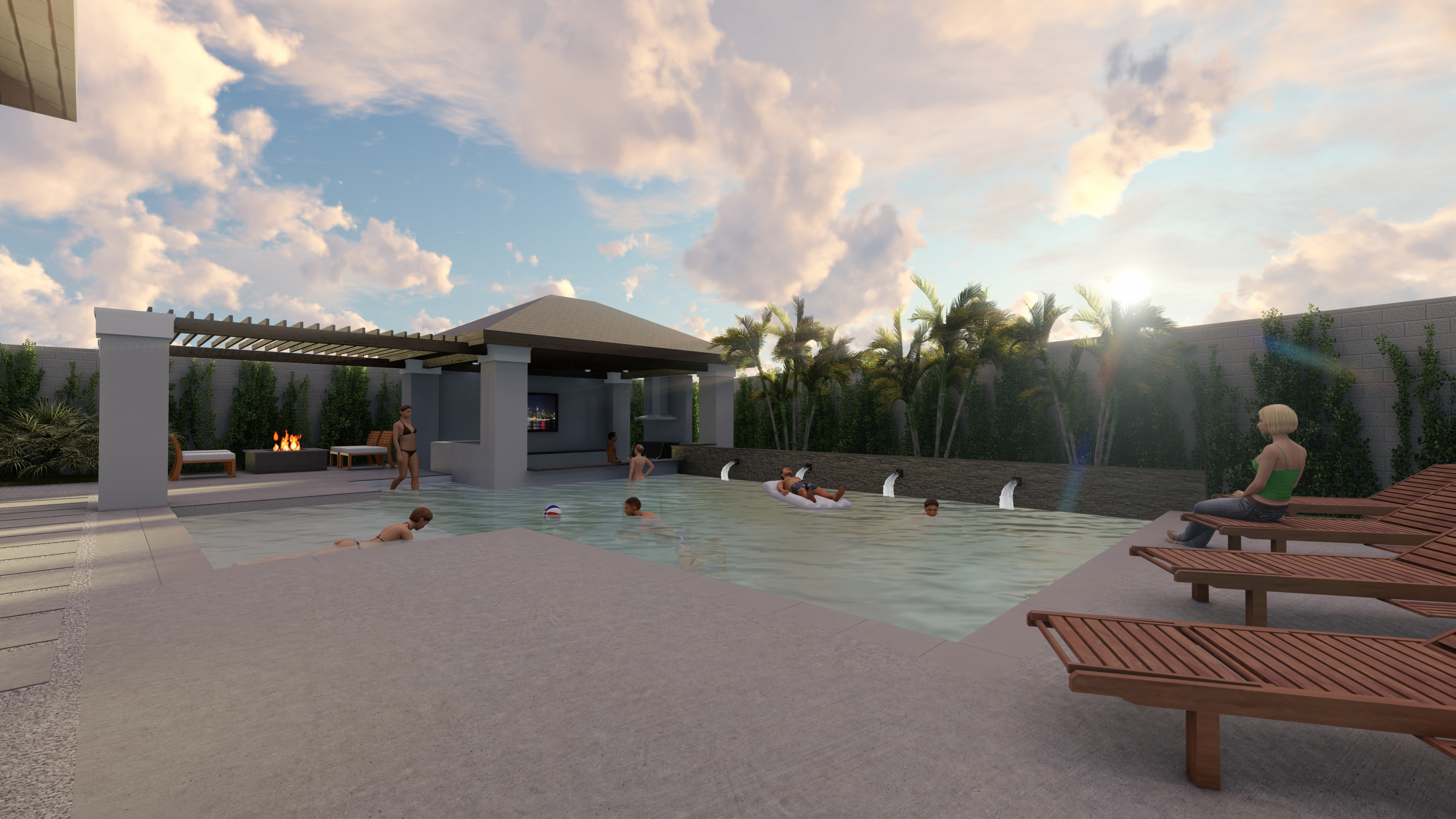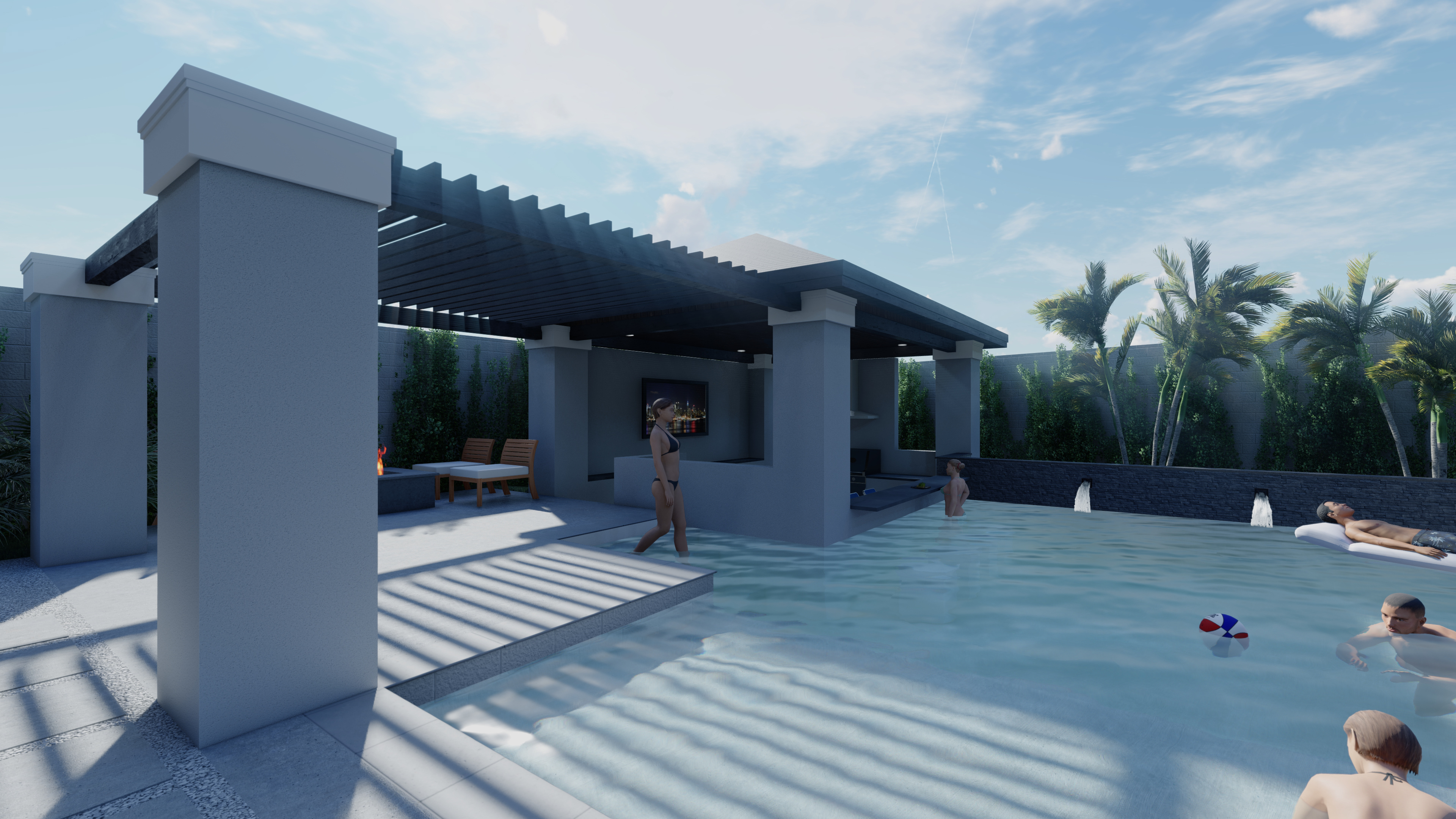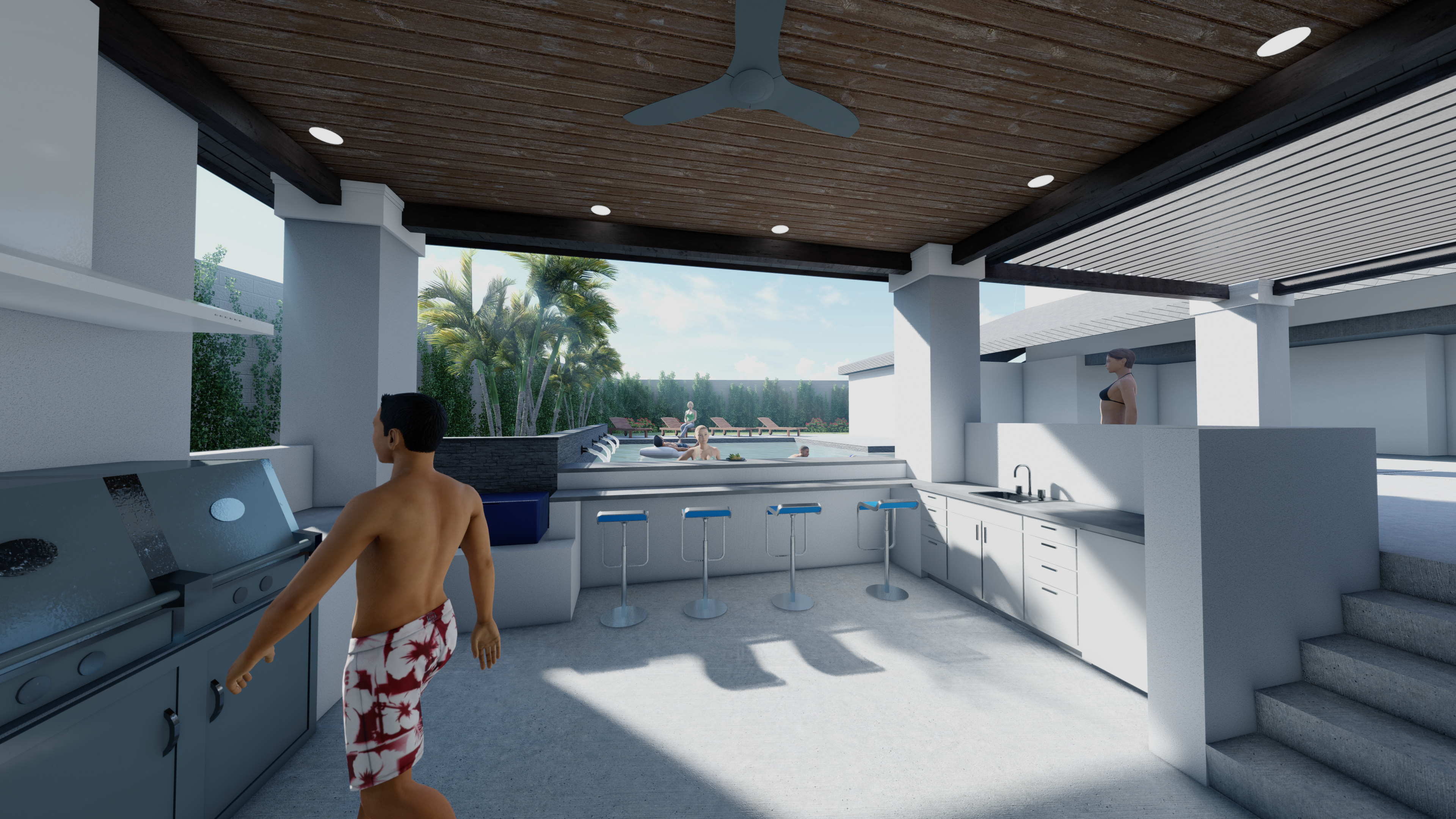 A luxurious outdoor, personalized haven, featuring a sunken bar and seamless indoor–outdoor flow that celebrates leisure, light, and modern residential living.