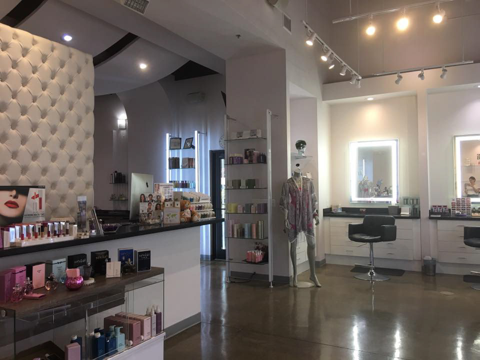A rich interplay of texture and light defines this salon interior. A woven ceiling inspired by braided hair hovers above a tufted leather backdrop, mirrored planes, and warm illumination—transforming the art of styling into an architectural experience..